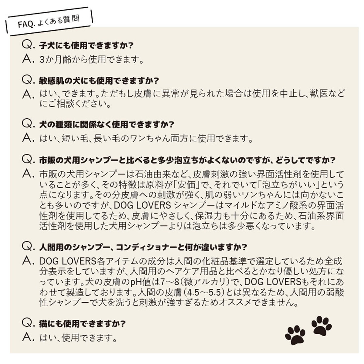 ケラチンなどの動物由来成分を一切使わないマイルドな処方で、敏感肌のワンちゃんにも使える犬用コンディショナー。