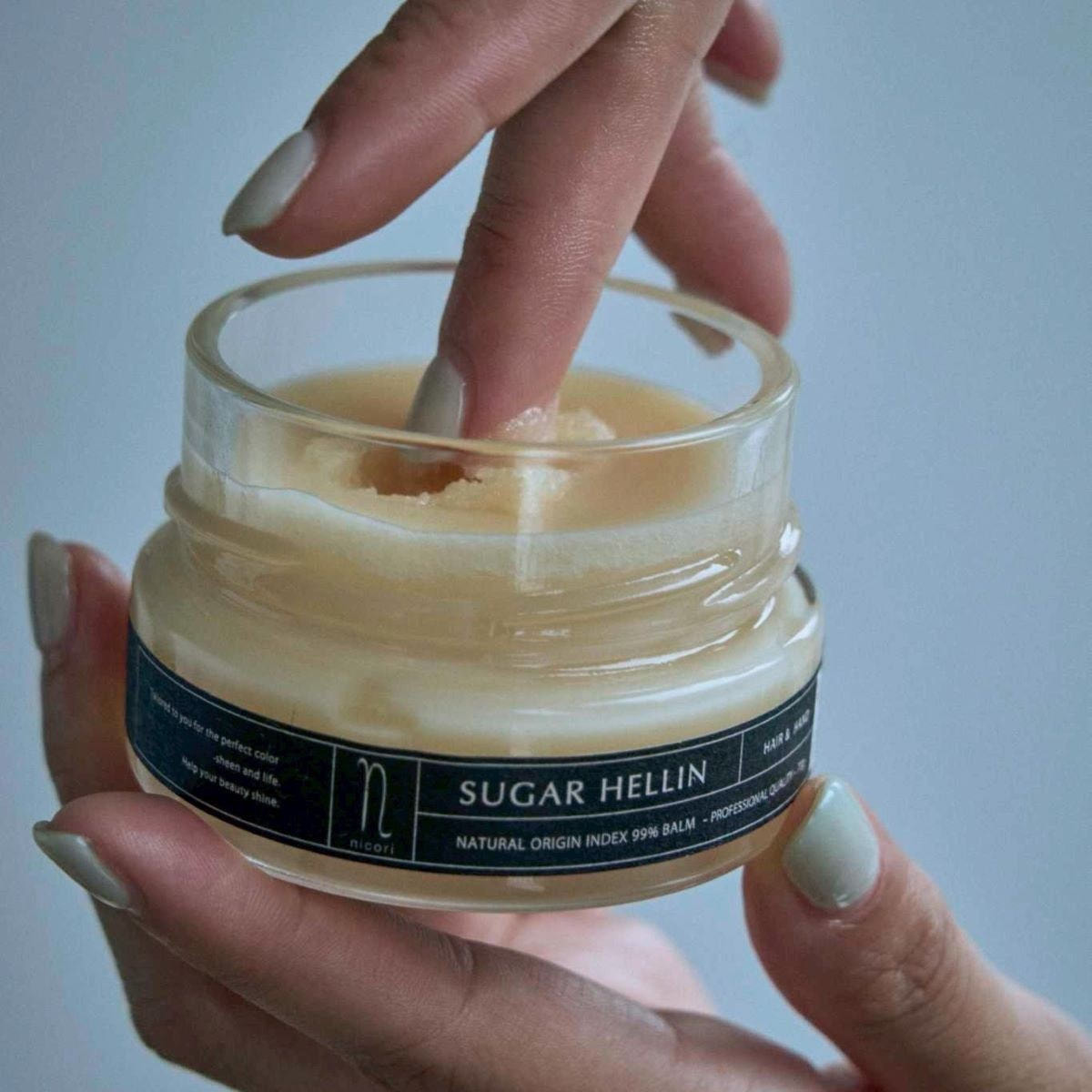 手のひらにでシュガーへリンを伸ばし、髪に手櫛を通すことで理想な毛流れを作ります。