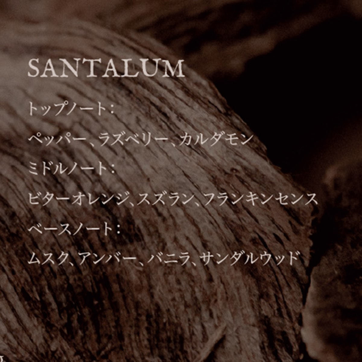 ベースノート:ムスク、アンバー、バニラ、サンダルウッド